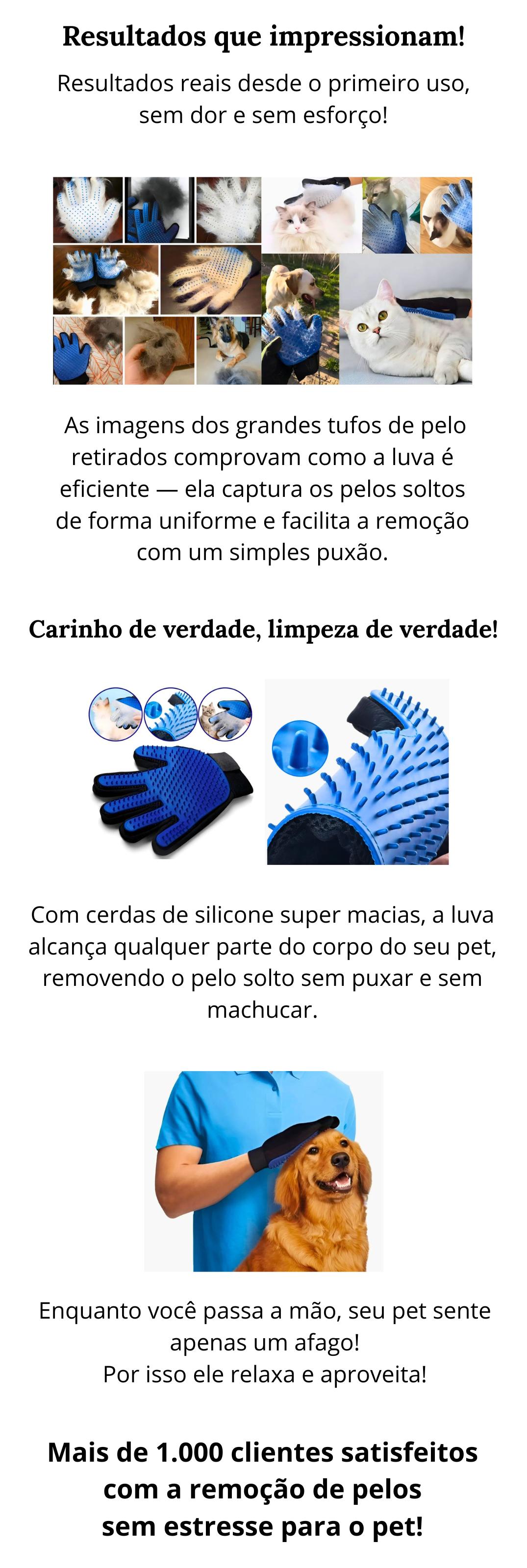 Com a luva massageadora, você remove os pelos do seu pet enquanto proporciona um momento de carinho e relaxamento.